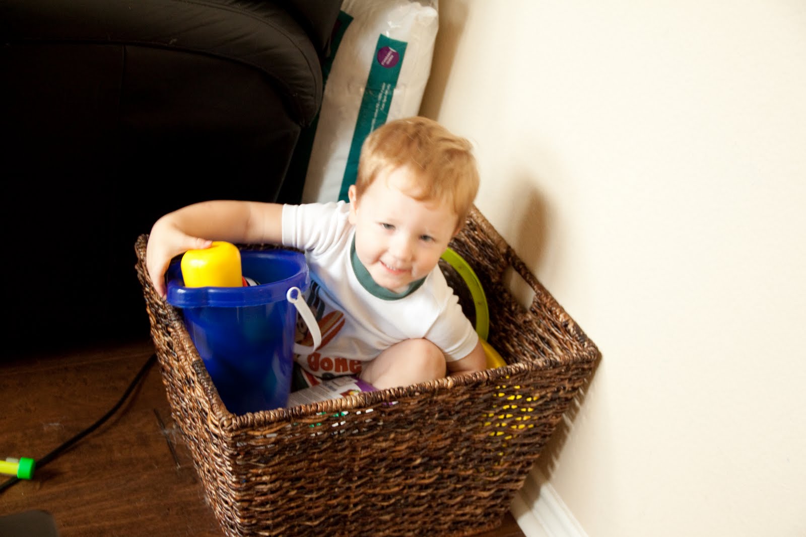 Tyler's Great Grandparents are here visiting. Today my Grandpa was cleaning out our flower beds. Tyler loves to help clean out the flower beds and he is such a good little helper. He carries around his bucket and "helps" pick things up. You can tell by the red cheeks that he was working really hard today.
